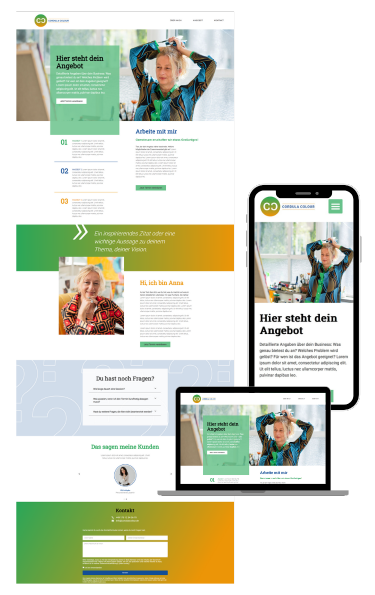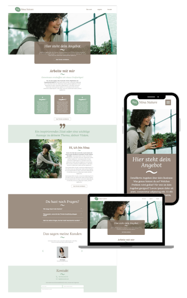 Nachdem du das Workbook ausgefüllt und an mich gesendet hast, erstelle ich deinen OnePager mit deinen individuellen Fotos, deinen Brandingfarben und deinen Texten. Und schon kann deine Website live gehen!